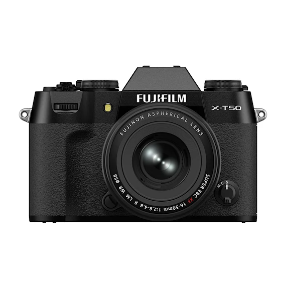Fujifilm X-T50 Svart är utrustad med samma högupplösta bildsensor och snabba processor som den populära föregångaren X-T5 – med optimerad konstruktion som får ner vikten till endast 438g. Trots den kompakta storleken ryms en fem-axlad bildstabilisering (IBIS) som kompenserar upp till sju stegs längre slutartid. X-T50 är den första modellen med ett dedikerat reglage på ovansidan för att snabbt kunna växla mellan någon av Fujifilms 20 omtyckta filmsimuleringar. Kit med den nya kompakta normalzoomen XF 16-50mm f/2,8-4,8 R.