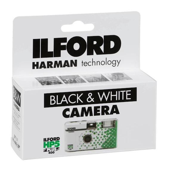 Engångskamera med svartvita filmen Ilford HP5 400 ASA och 27 exp. Framkallas i svartvit process.